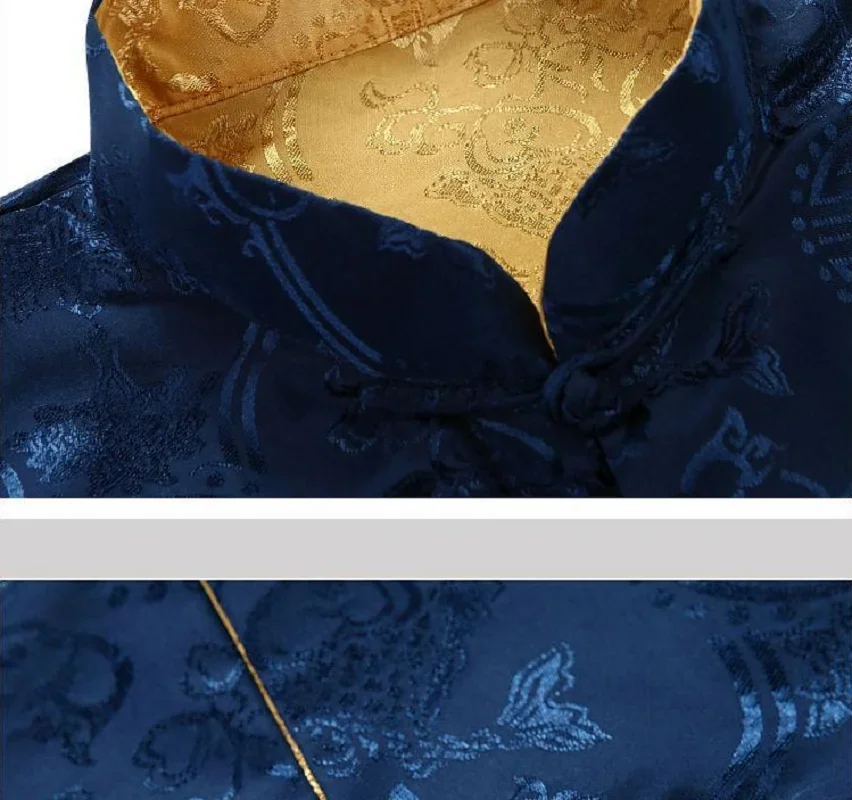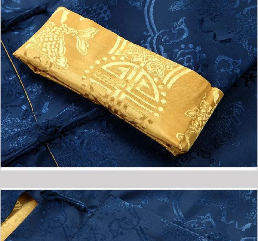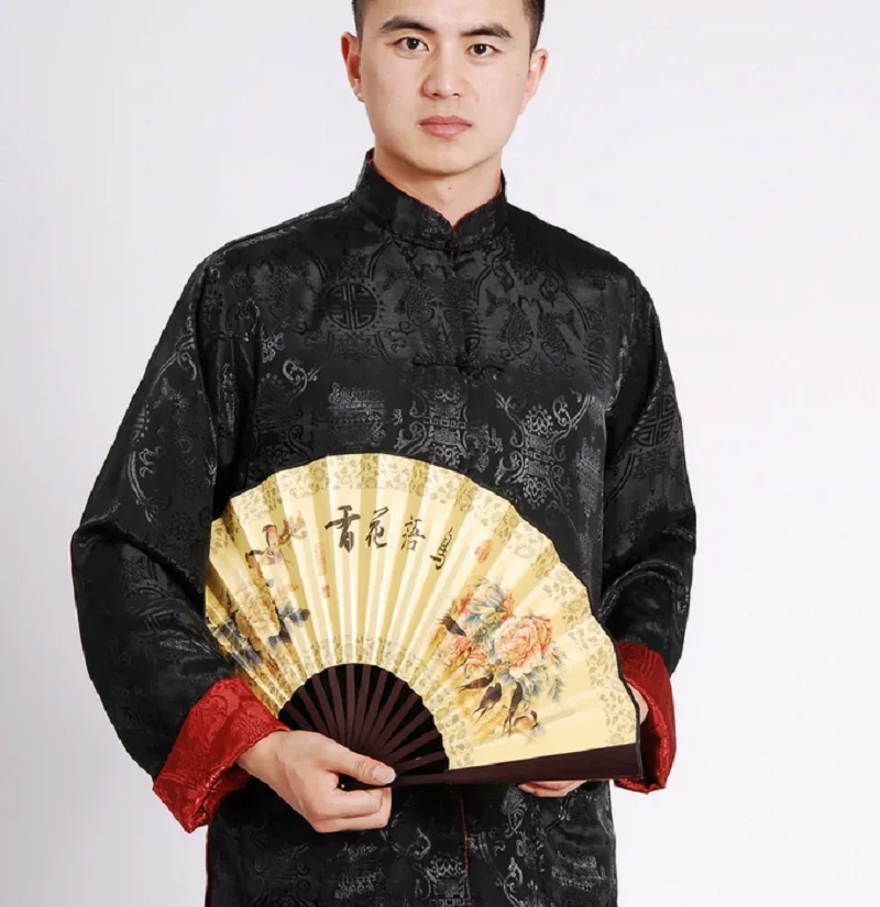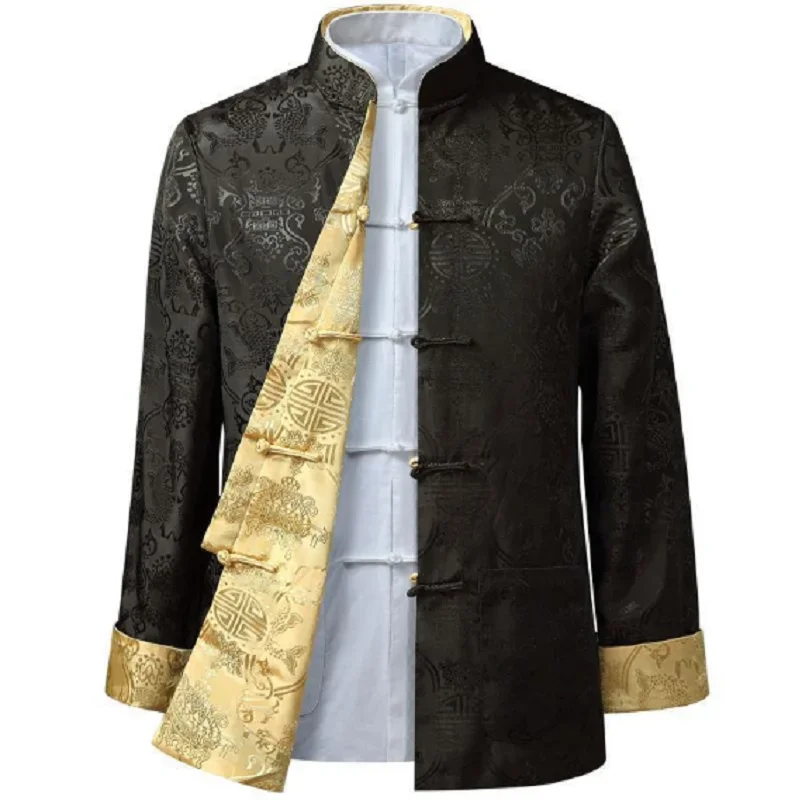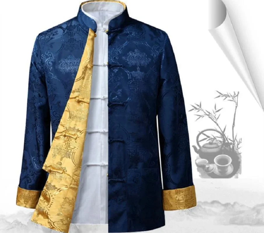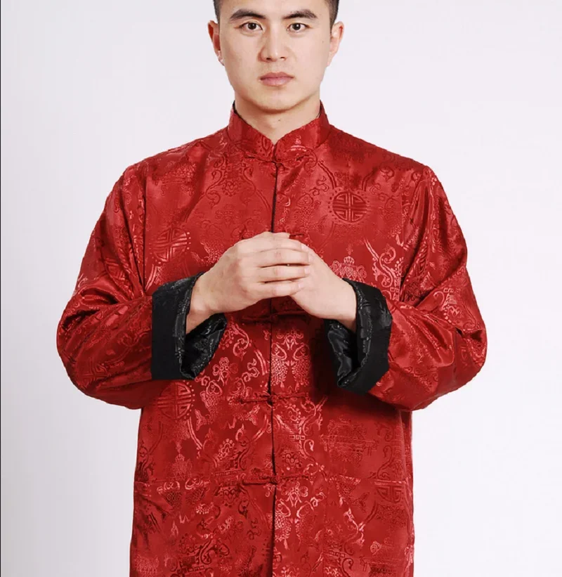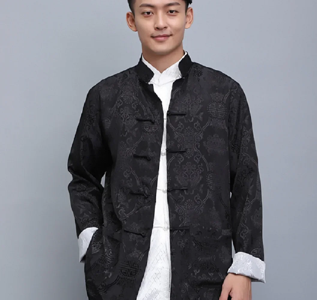 Hot Sale Men Chinese Style Satin Silk Tang Suit Jacket Double Faced Long Sleeve
