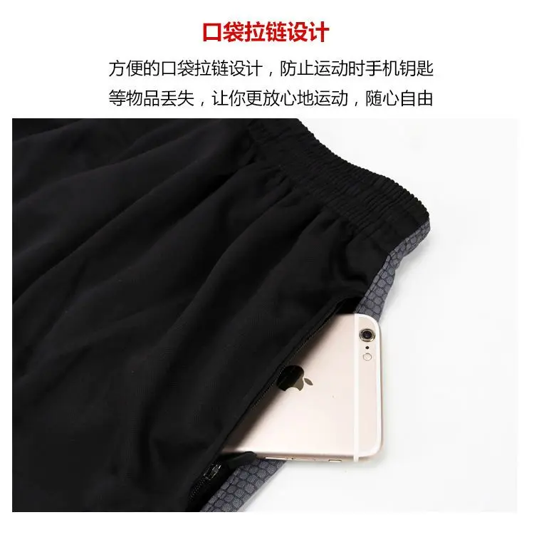 Men Sports Pants Loose Strap Quick Dry Print Elastic Waist Pocket Zipper Fitness