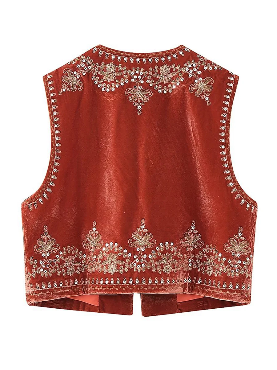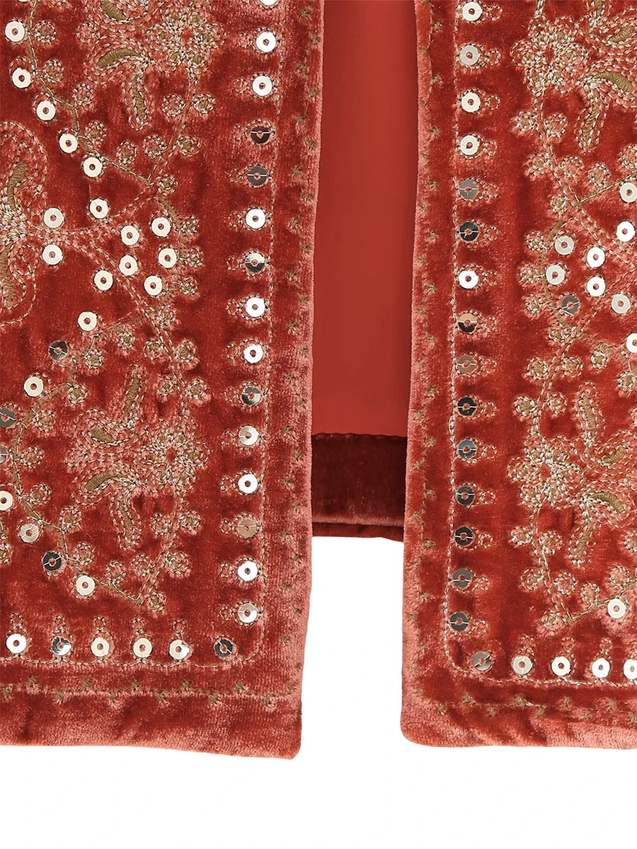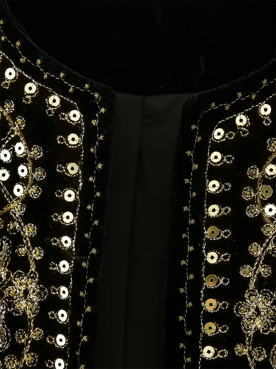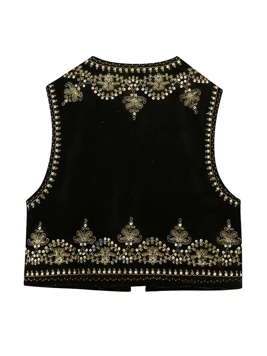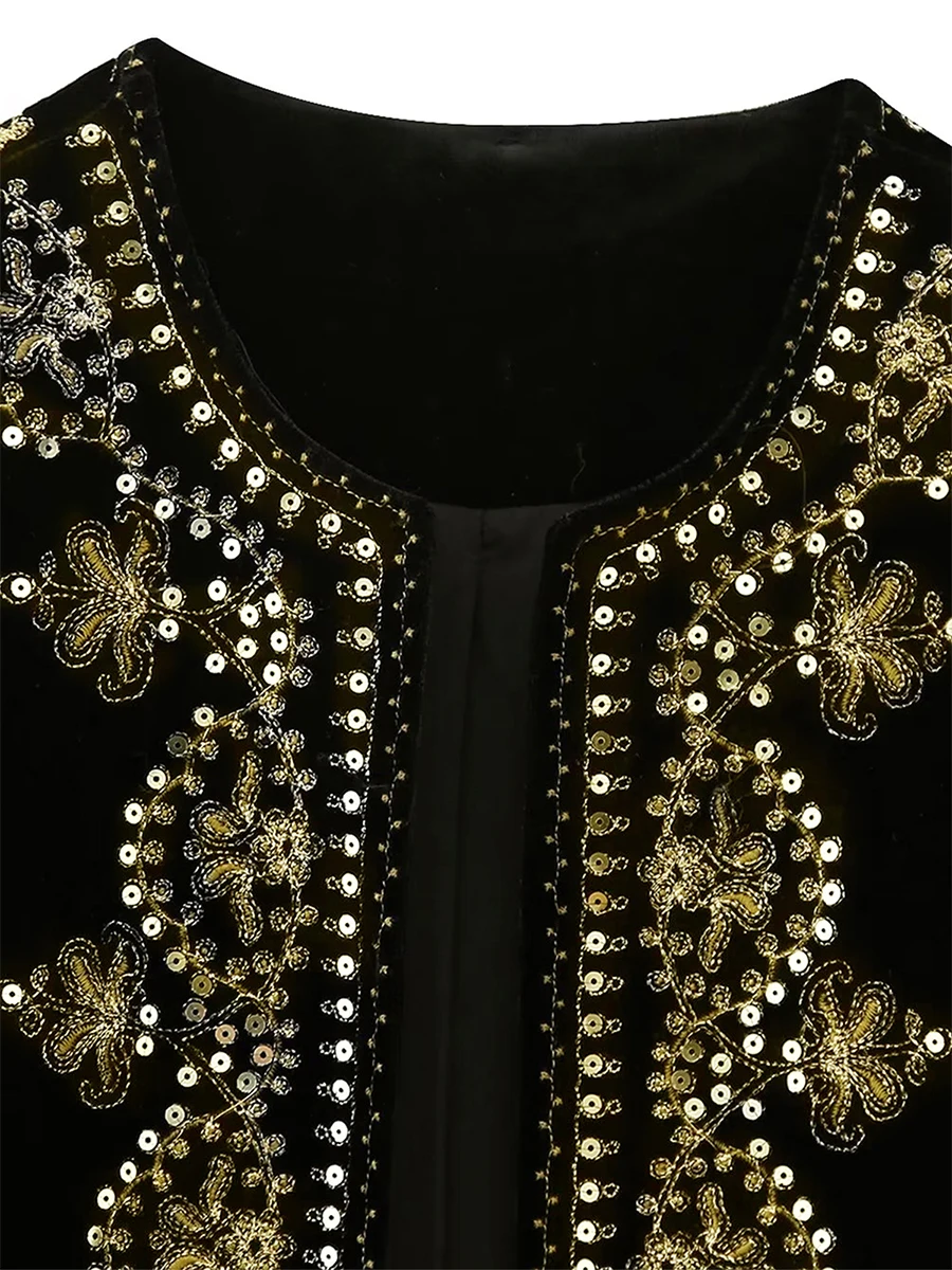 Women Vest, Sleeveless Open Front Embroidery Flower Sequined Outwear Gilet for Casual Street
