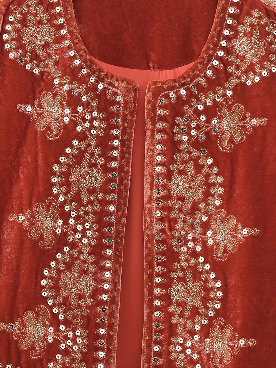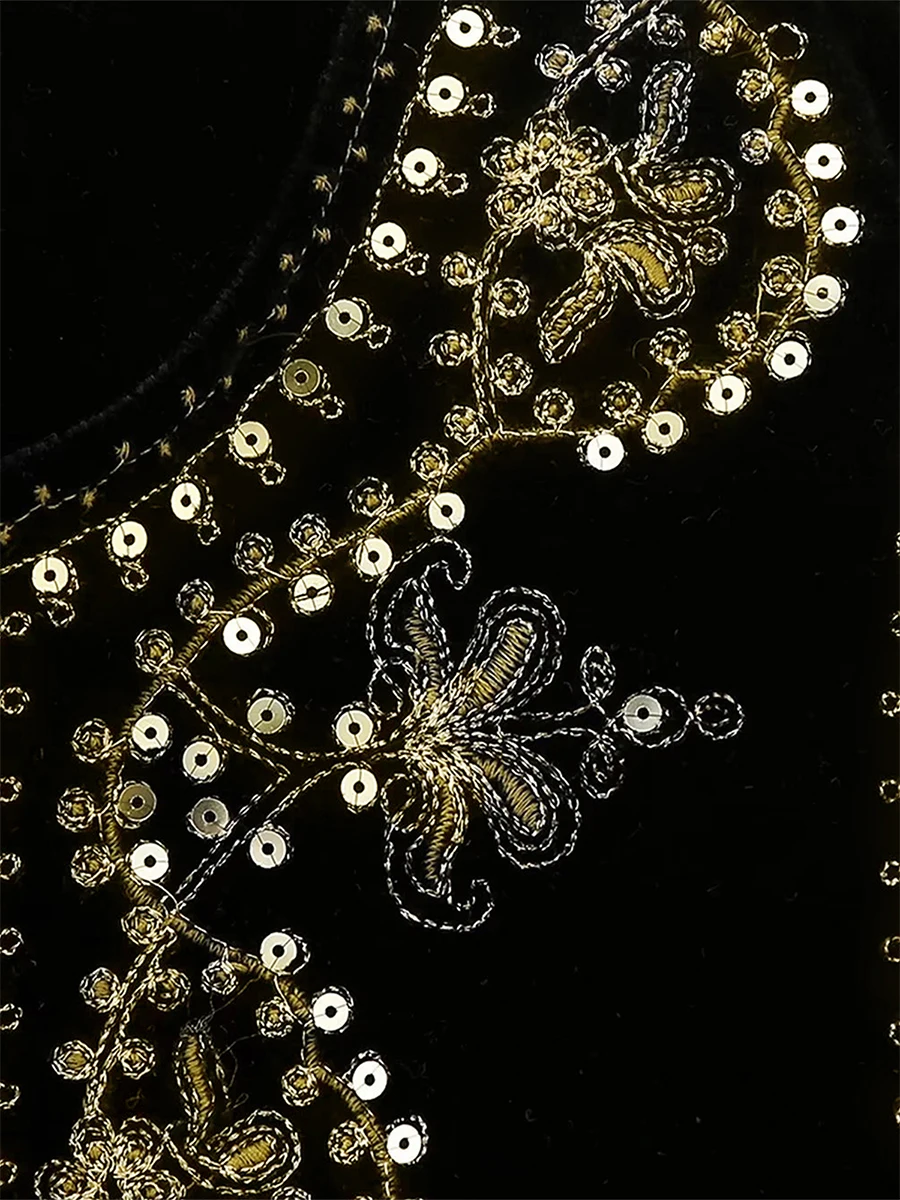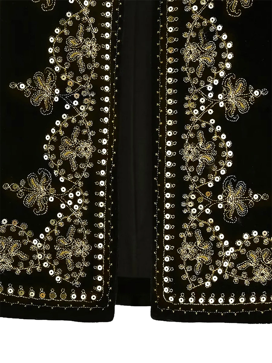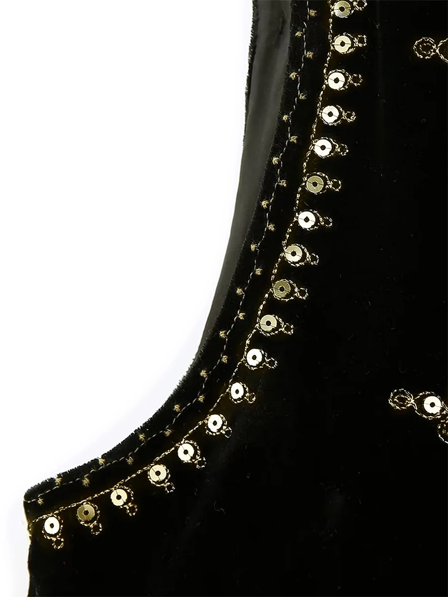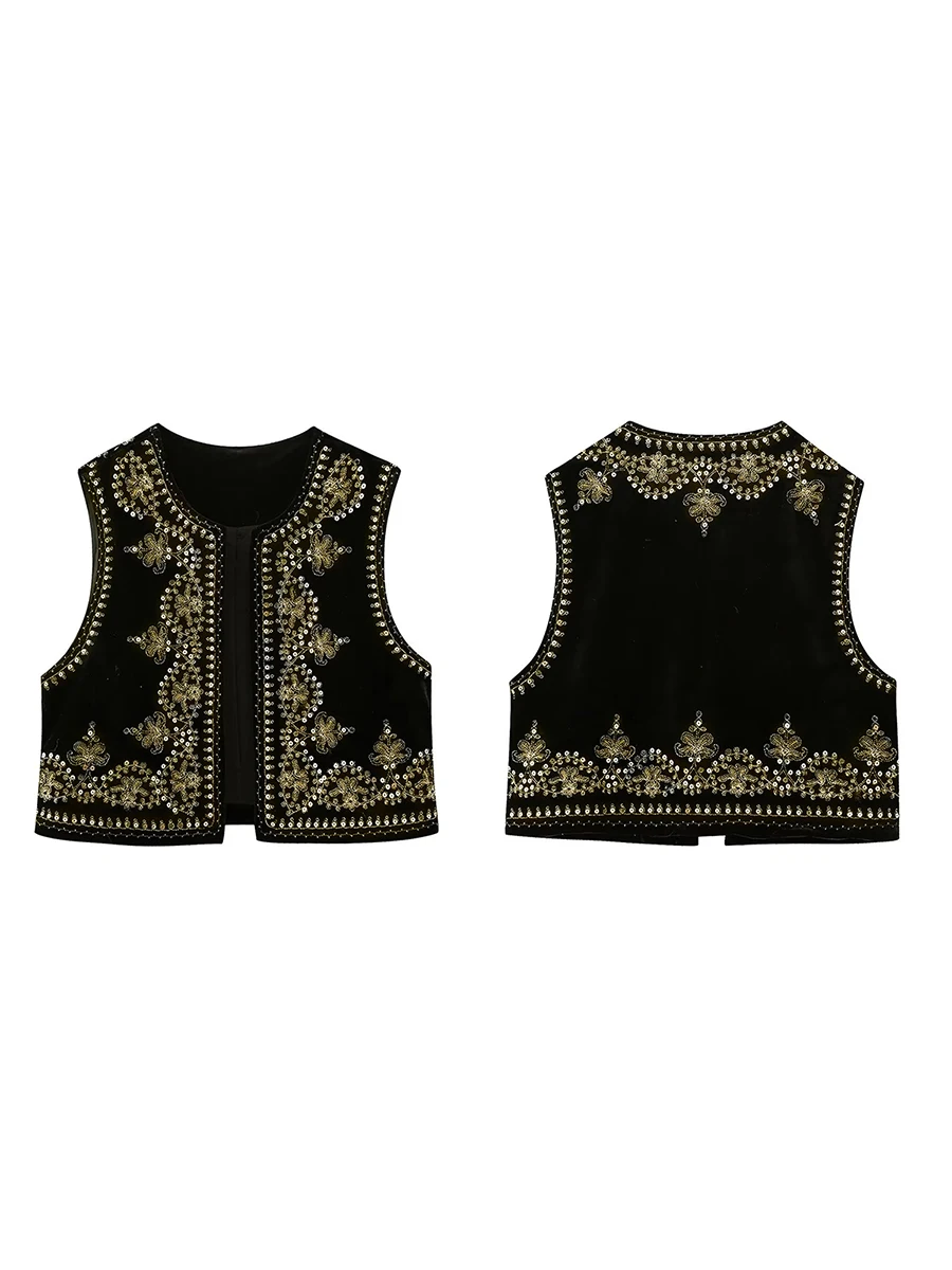 Women Vest, Sleeveless Open Front Embroidery Flower Sequined Outwear Gilet for Casual Street